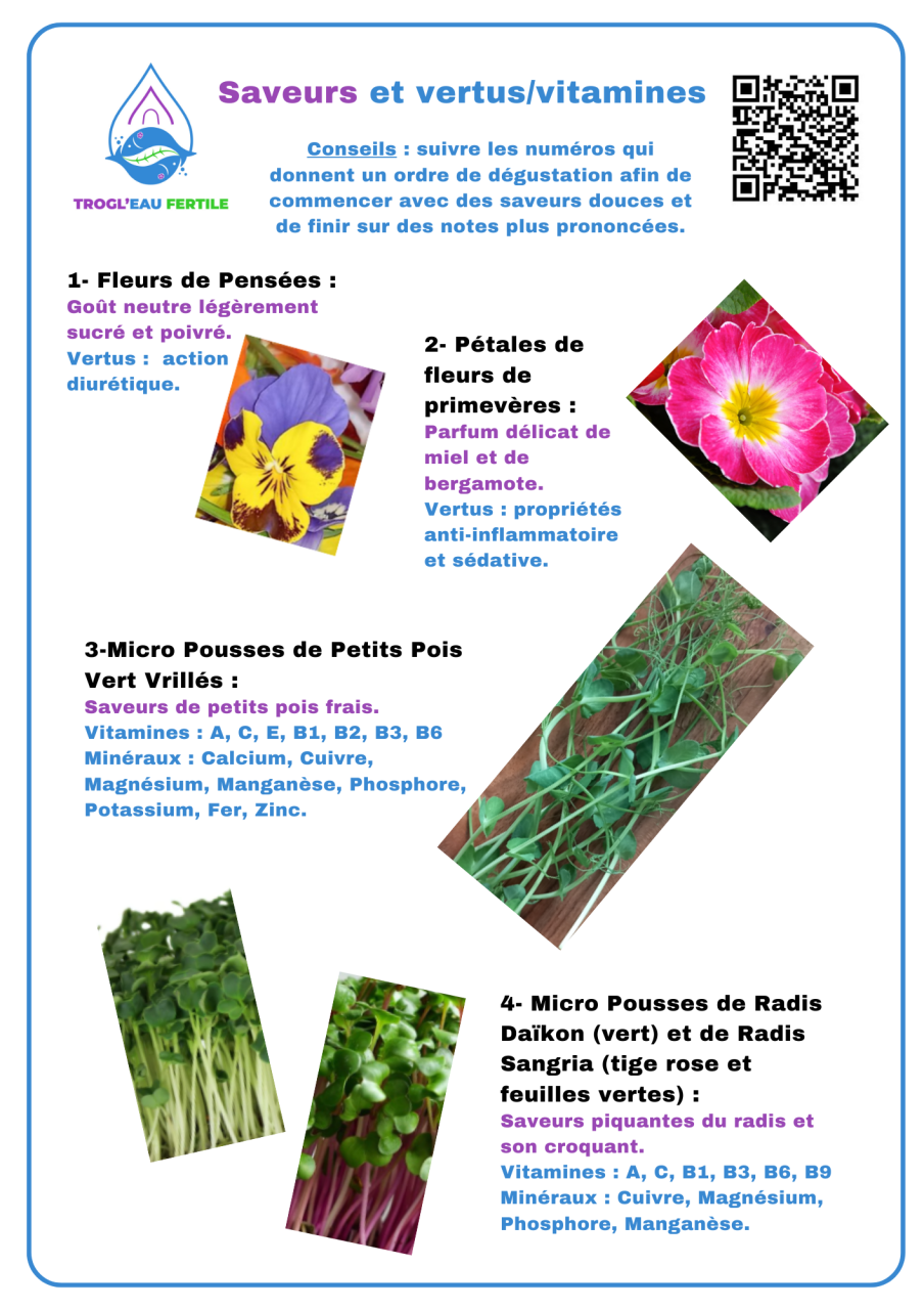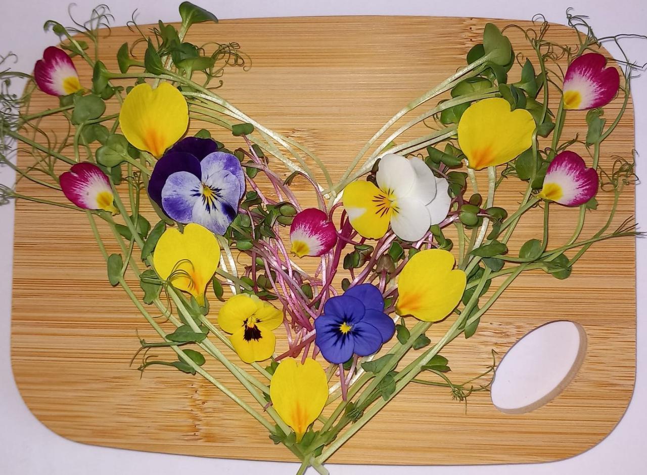 Cette planche est élaborée à partir de micro pousses de légumes et de fleurs comestibles de saison.