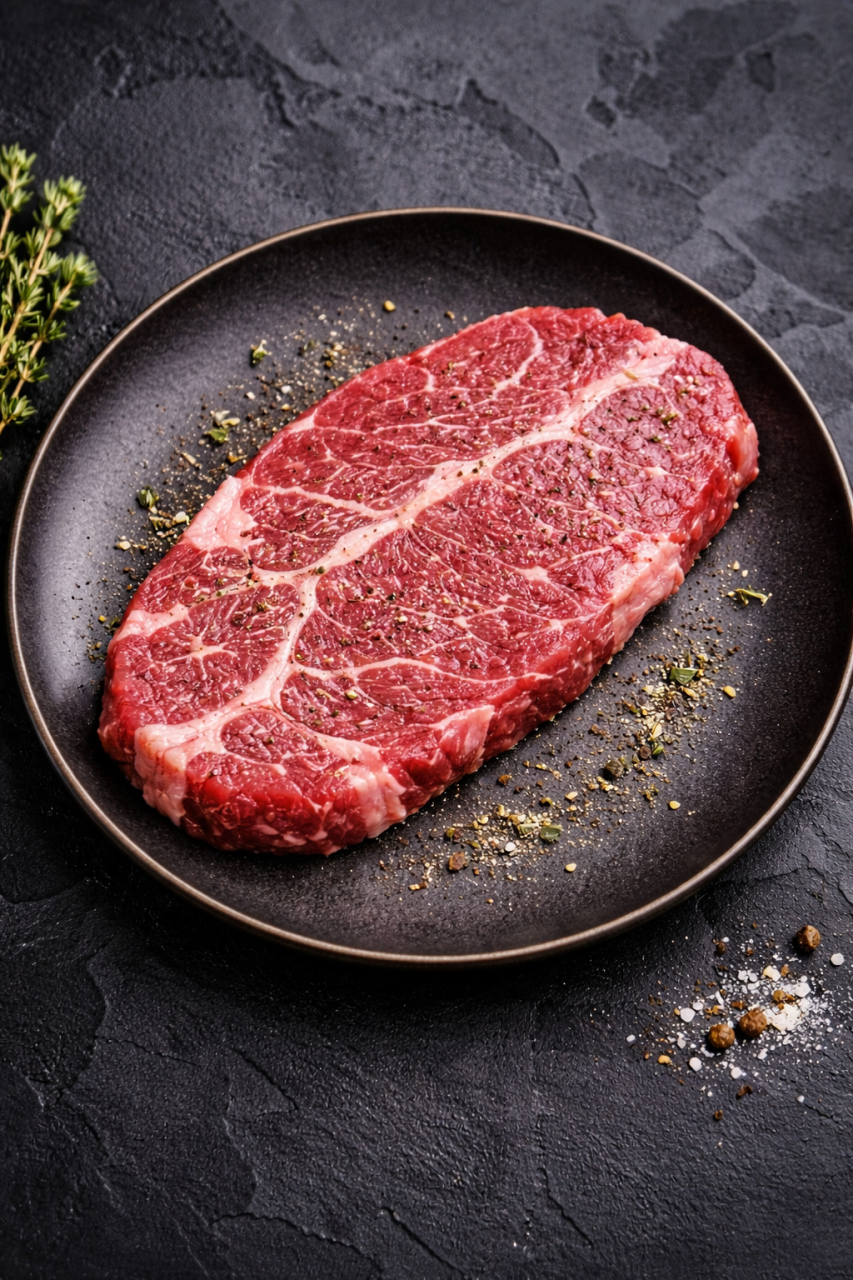 Le steak dans la basse côte est une pièce de bœuf savoureuse, découpée dans l’avant du train de côtes. Naturellement persillée, cette viande offre un excellent équilibre entre tendreté et goût prononcé, très apprécié des amateurs de viande.