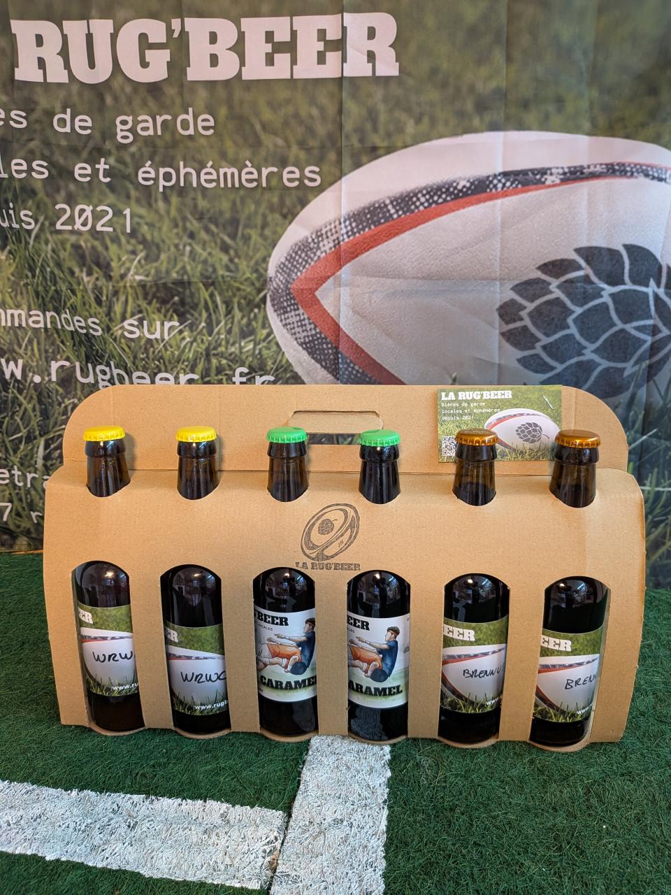La brasserie vous propose un coffret de 6 bières 33cl Rug'beer pour découvrir à 2 les bières rug'beer.