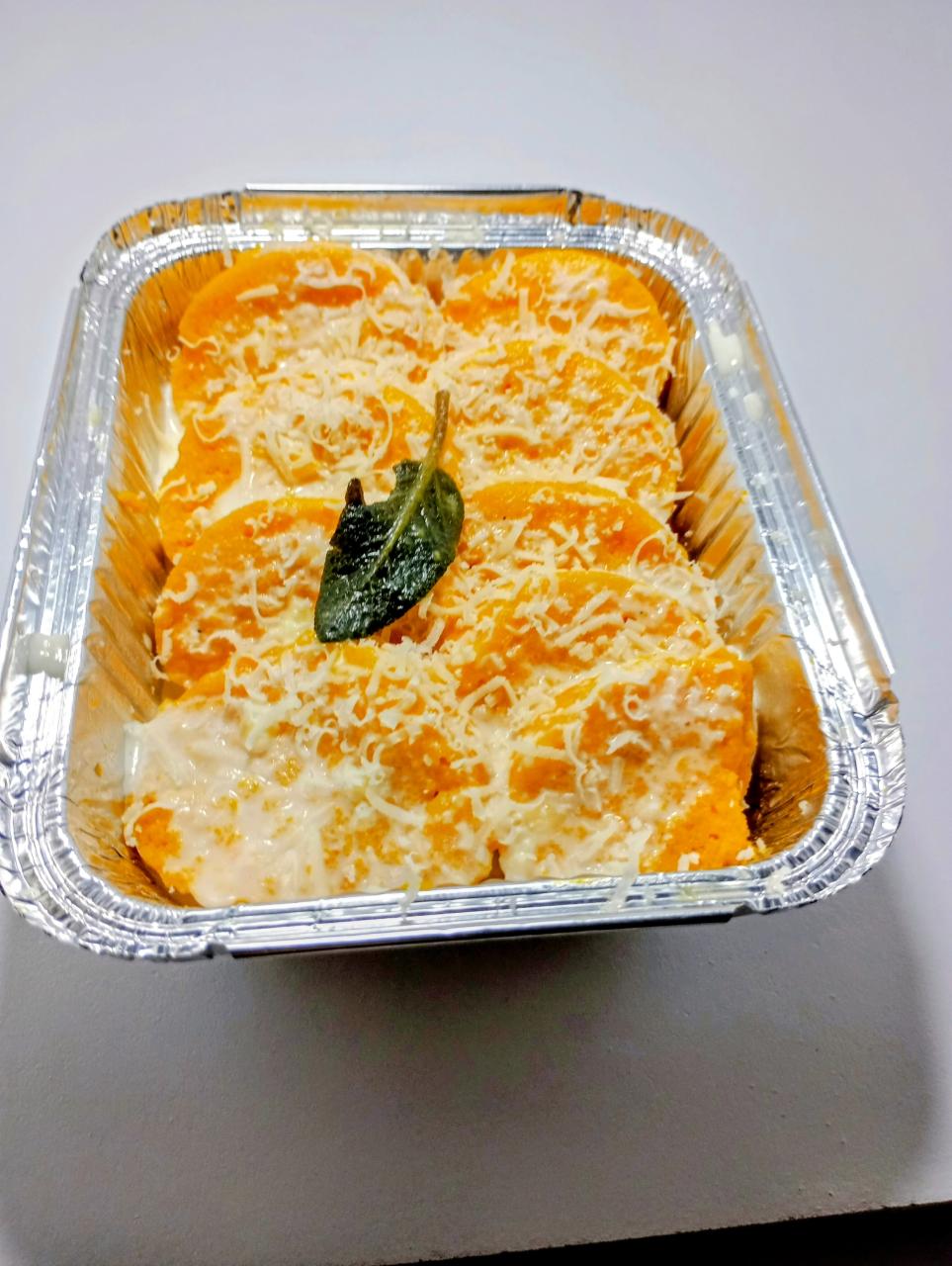 Ingrédients : Lait, semoule, courge, parmesan, oeufs, beurre, noix de muscade, sel sauge