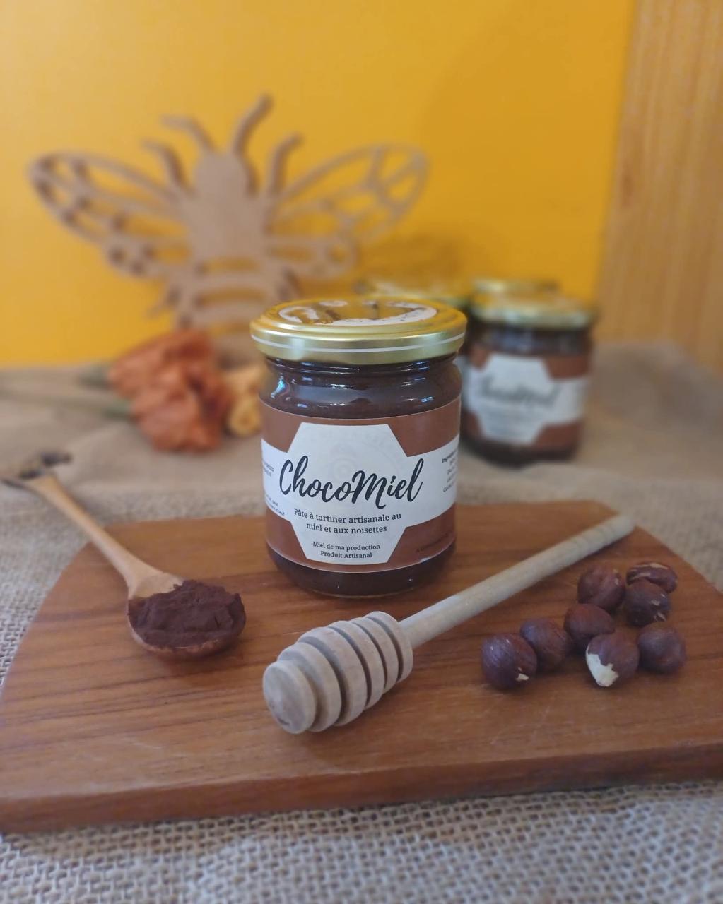 Le Chocomiel est une recette artisanale élaborée maison à partir de mon miel pressé. Travaillé lentement pour obtenir une texture onctueuse et naturelle, il offre un bel équilibre entre la douceur du miel, l’intensité du cacao et la rondeur de la noisette.