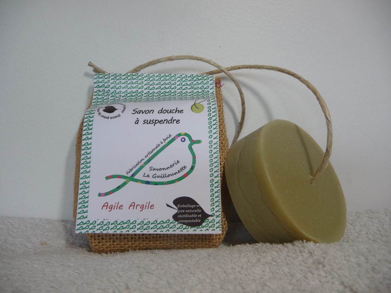 Version à suspendre : pratique et malin sa cordelette permet de suspendre le savon pour éviter qu'il ne glisse et la garder bien au sec !