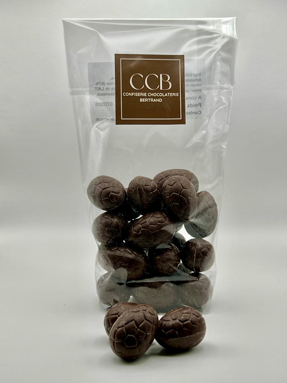 Dans la gamme de Pâques, découvrez les petits œufs au pralinés Amandes / noisettes et chocolat noir 67%