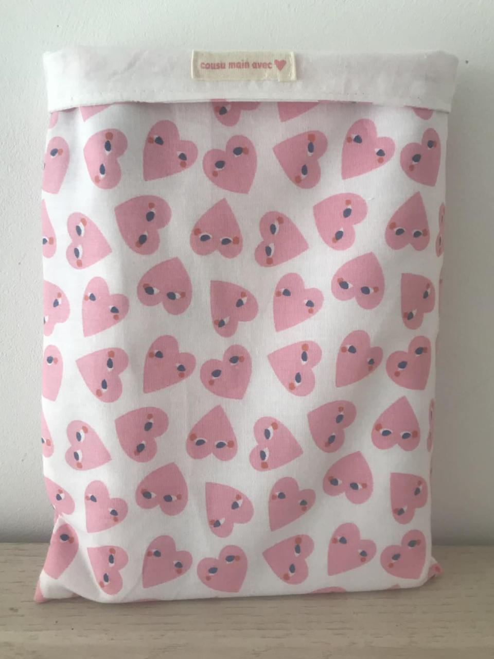 Cette pochette est en tissus 100% coton et entièrement doublée, votre livre sera bien protégé à l'intérieur.