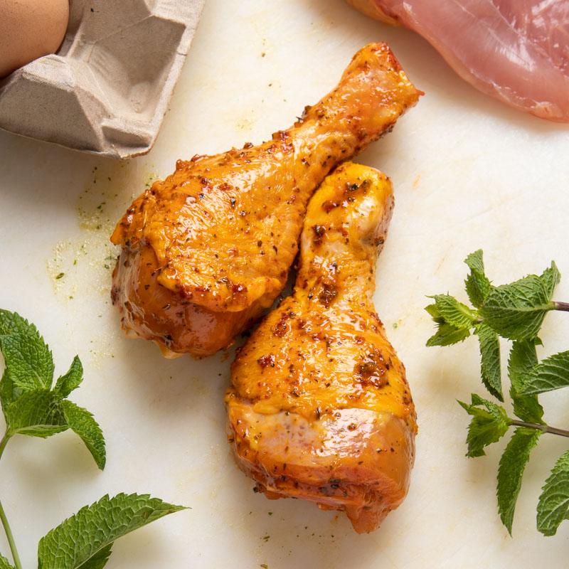 Nos pilons de poulet, tendres et bien dorés après cuisson, offrent une viande juteuse et pleine de goût, idéale pour vos barbecues ou vos plats quotidien. Prêt à cuire, nos pilons de poulet mariné se déguste aussi bien au four, à la poêle ou au barbecue.