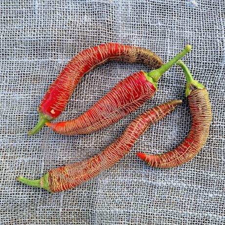 Petit piment chaud cornu d'environ 25 x 2 cm.