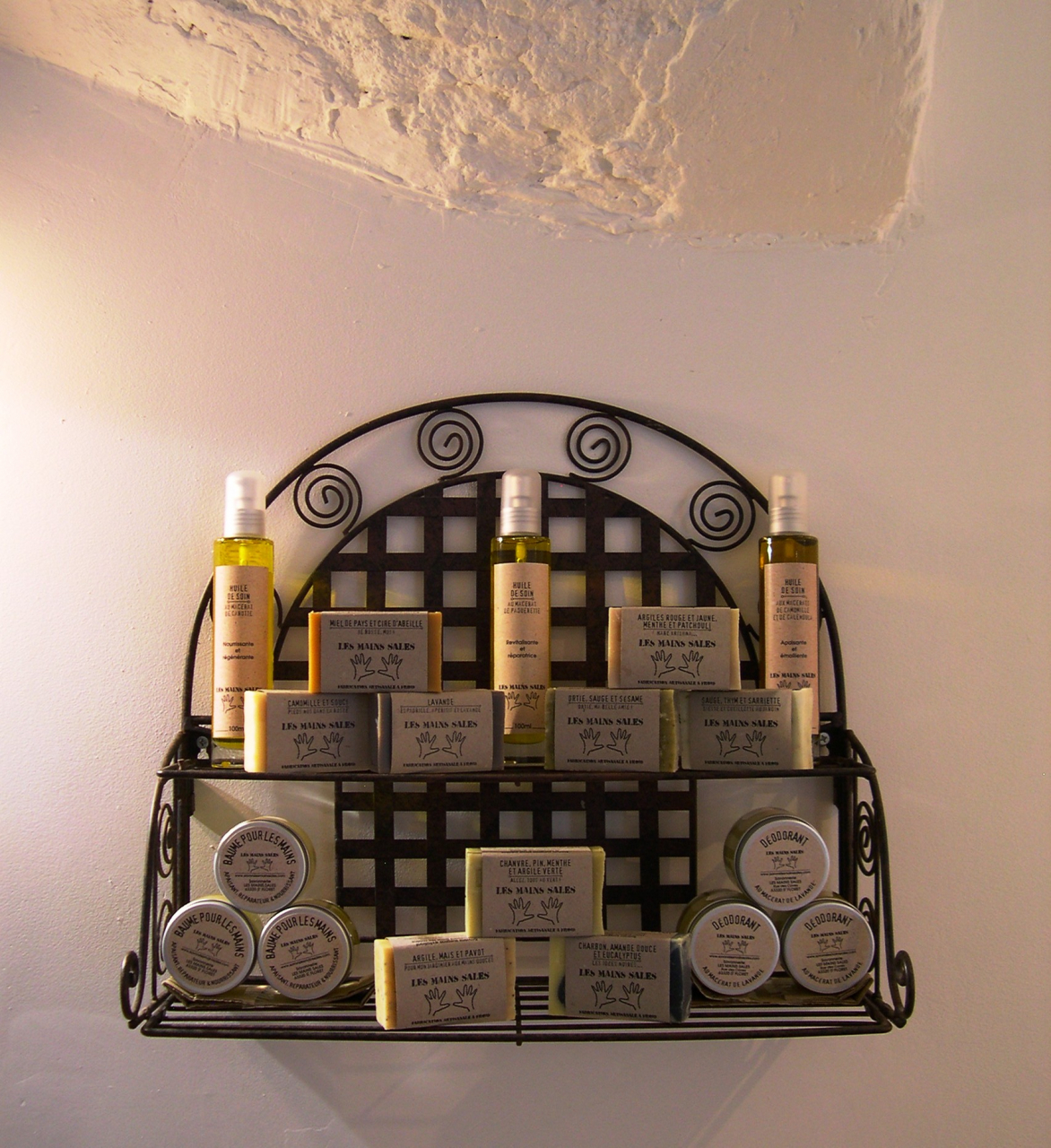 Formulé à base d'huiles de tournesol, coco, ricin, cameline, beurre de karité, infusion d'achillée millefeuille, macérât de lavande, charbon végétal, argile rouge et huiles essentielles de pin sylvestre, thym, eucalyptus radiata, et menthe poivrée.