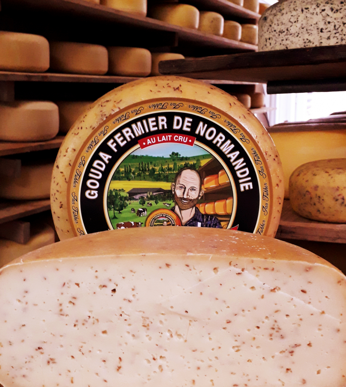 Notre gouda fermier au lait cru se distingue très nettement des versions industrielles réalisées à base de lait pasteurisé. Le fromage encore frais est crémeux et doux. Il acquiert un caractère plus marqué à maturité. Différent à chaque saison et à chaque stade de son affinage, ce produit artisanal authentique procure des sensations sans cesse renouvelées à la dégustation.