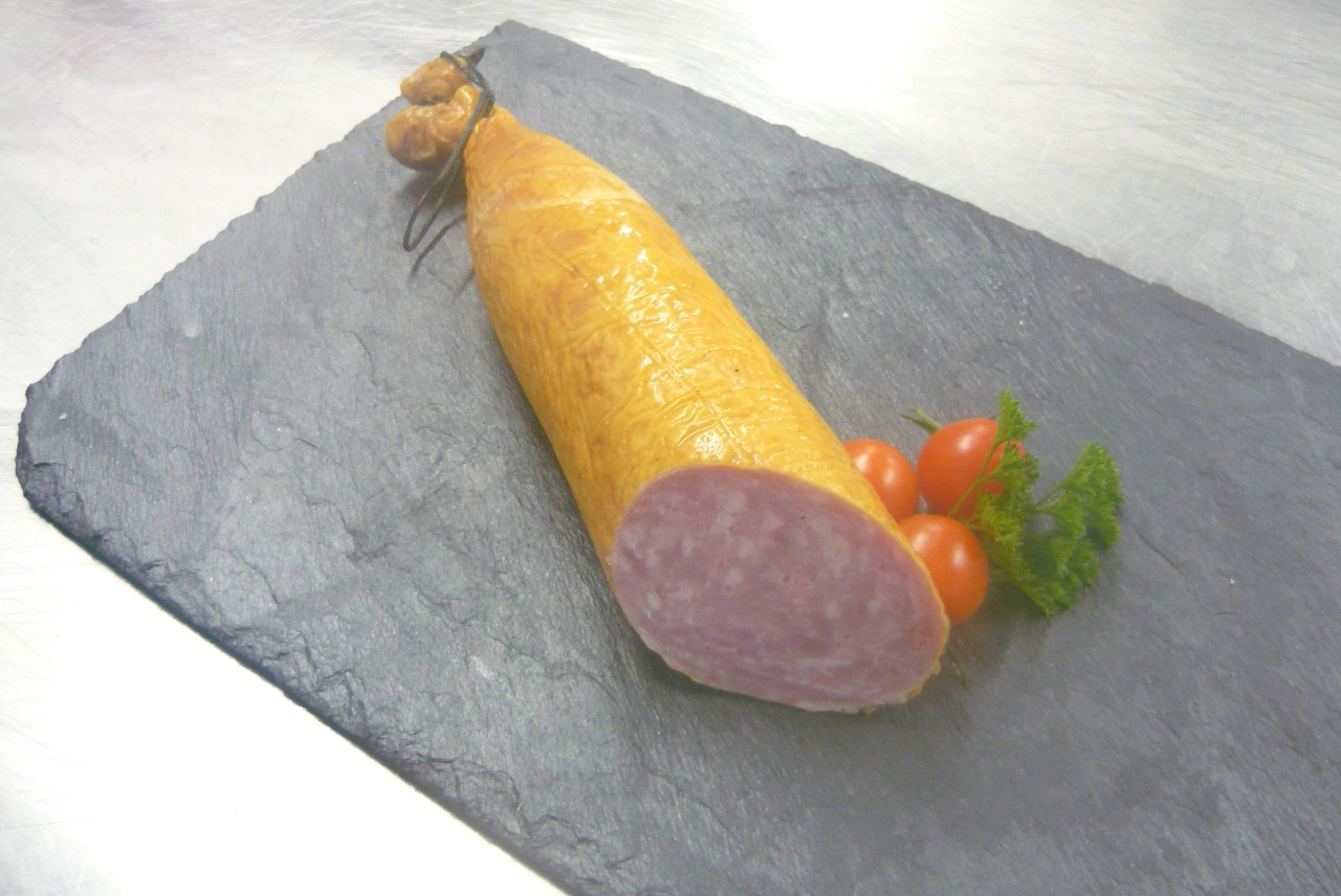 Après être hachée et mélangée aux épices, la viande est mise dans un boyau et cuite. Après cuisson il est fumé au bois de hêtres ce qui lui apporte un gout prononcé.