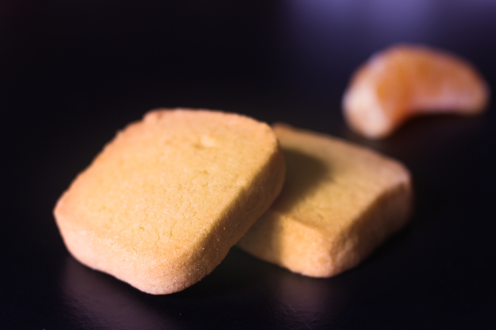Farine de blé* locale (Gard), oeufs frais*(Gard), beurre frais*, sucre glace*, poudres d'écorces de mandarine*, sel.