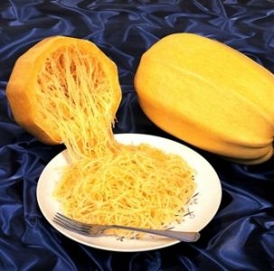 La courge spaghetti se consomme sous forme de spaghetti. Parfait pour se régaler avec des « pâtes » sans gluten et pauvres en glucides !