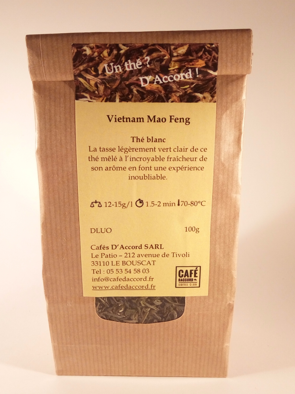 Le thé blanc désigne un procédé minimaliste. Les feuilles avec de nombreux bourgeons (ou uniquement des bourgeons dans certains cas) sont cueillies à la main, puis sont flétries, séchées au soleil ou torréfiées en bassine ou par vapeur. Leur liqueur est assez déconcertante car non tannique, très cristalline et légère. Ces thés ont une note fleurie et très fraîche.