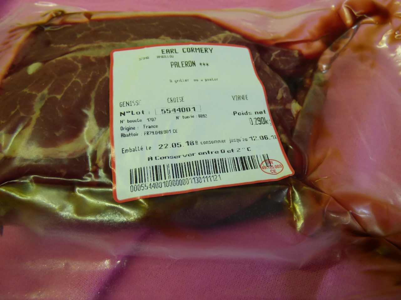 génisse de race à viande croisée ( charolaise, limousine) née et élevée sur l'exploitation. Nourrie avec des céréales que nous produisons et de l'herbe de nos prairies.