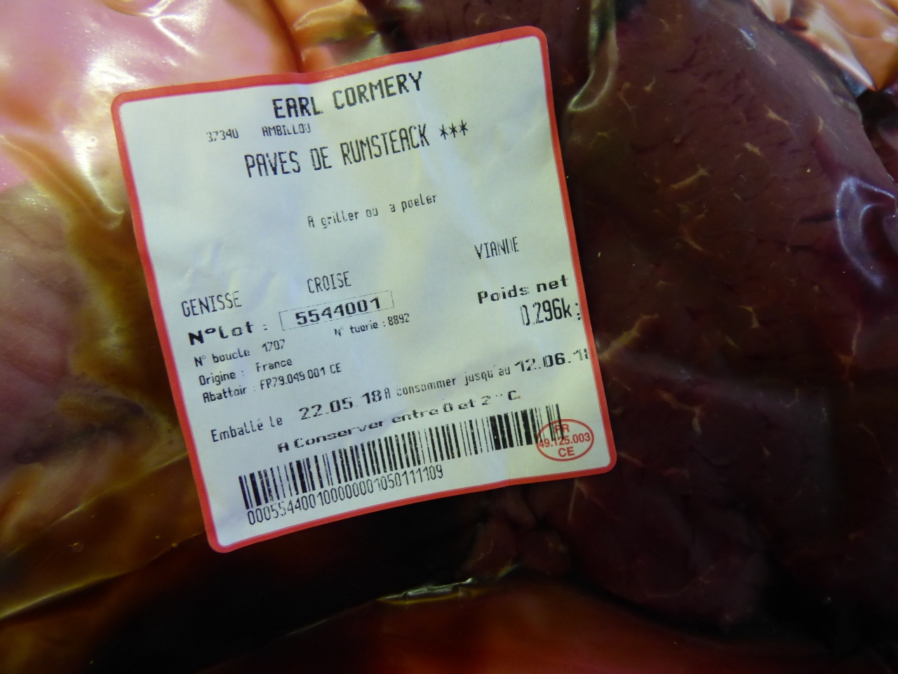 génisse de race à viande croisée ( charolaise, limousine) née et élevée sur l'exploitation. Nourrie avec des céréales que nous produisons et de l'herbe de nos prairies.