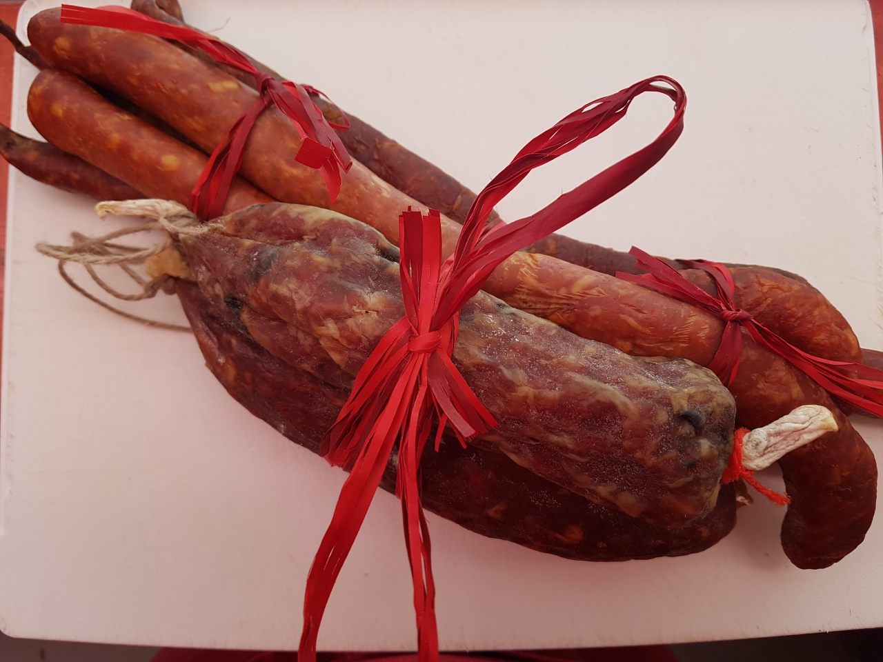 Le lot comprend 500gr de mélange de saucisse à croquer(nature, fromage et piquante) ainsi qu'un salami nature et un chorizo.