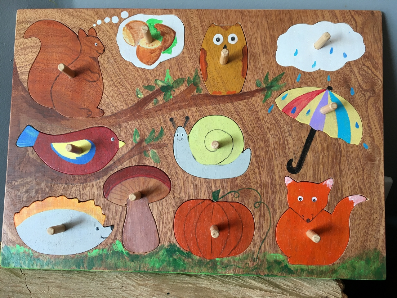 Ce joli puzzle aux formes variées est un jouet en bois ludique, simple et amusant pour les enfants de 1 à 4 ans.