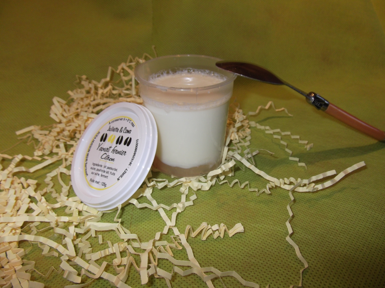 Yaourt au lait écrémé pasteurisé avec un lit de fruits mirabelle