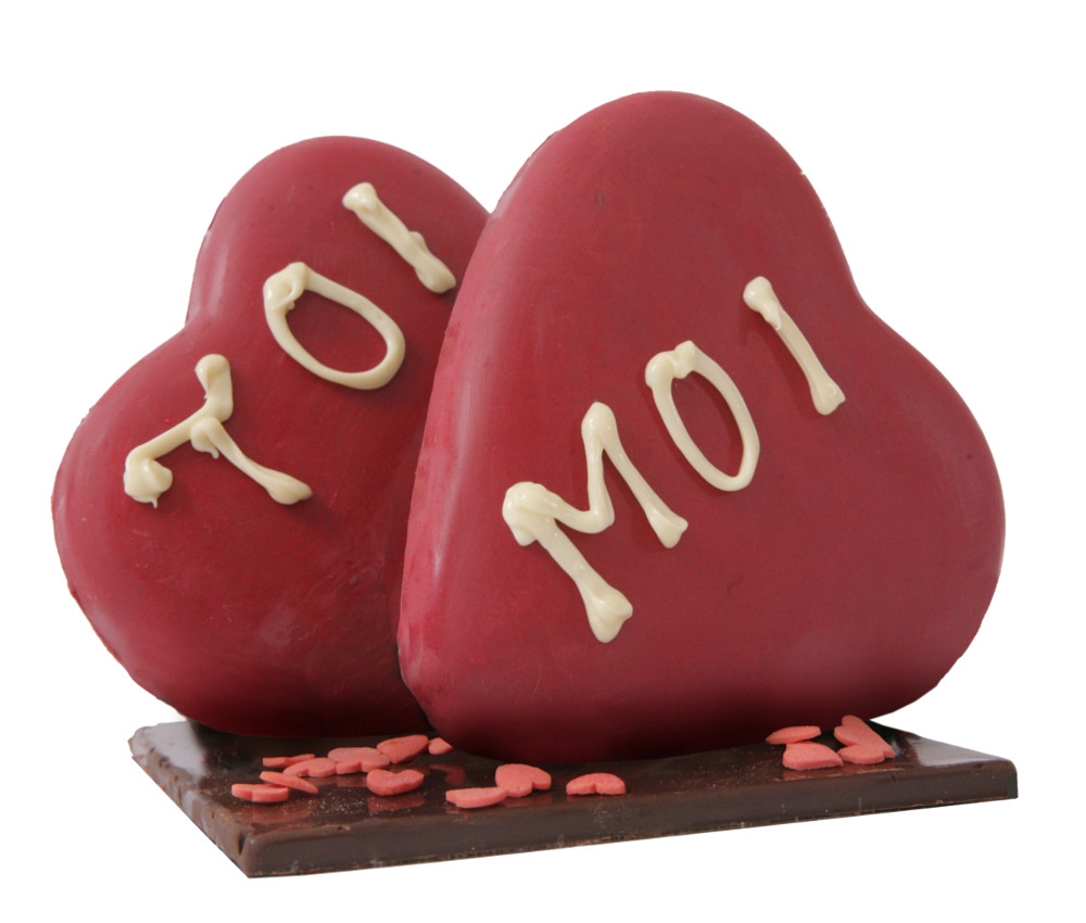 Parfois, pas la peine d’en dire beaucoup… Un simple petit message suffit ! Composée de deux cœurs tendres au chocolat blanc sur une base de chocolat noir, cette composition vous permettra de marquer le coup !