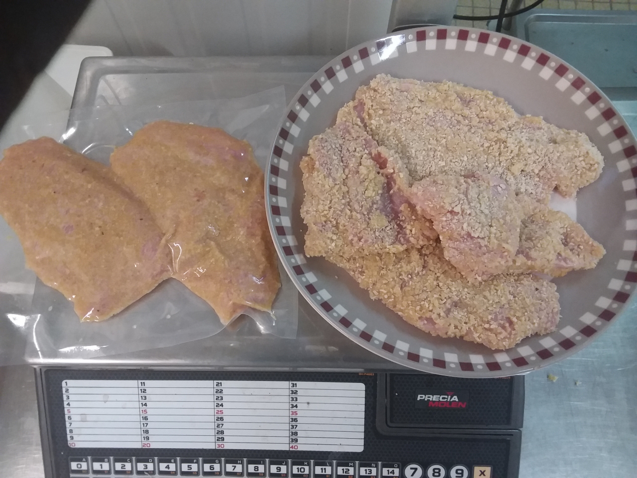 2 escalopes de dinde panees avec de la poudre de noisettes à faire cuire à feu doux dans une poêle beurrée.