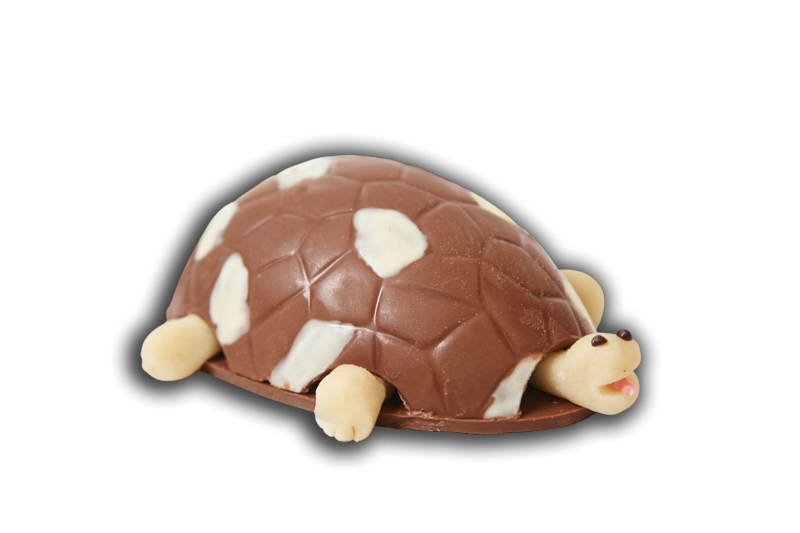 Pour ceux qui préfèrent les créations 100% originales, nous vous proposons cette adorable petite tortue de Pâques, composée d’une carapace croquante au chocolat au lait et tachetée de chocolat blanc. Modelé avec de la pâte d’amande, vous ne pourrez résister à son corps moelleux en bouche !
