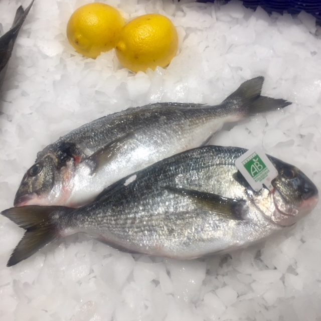 Daurade royale BIO "Sparus aurata" élevée en Grèce.