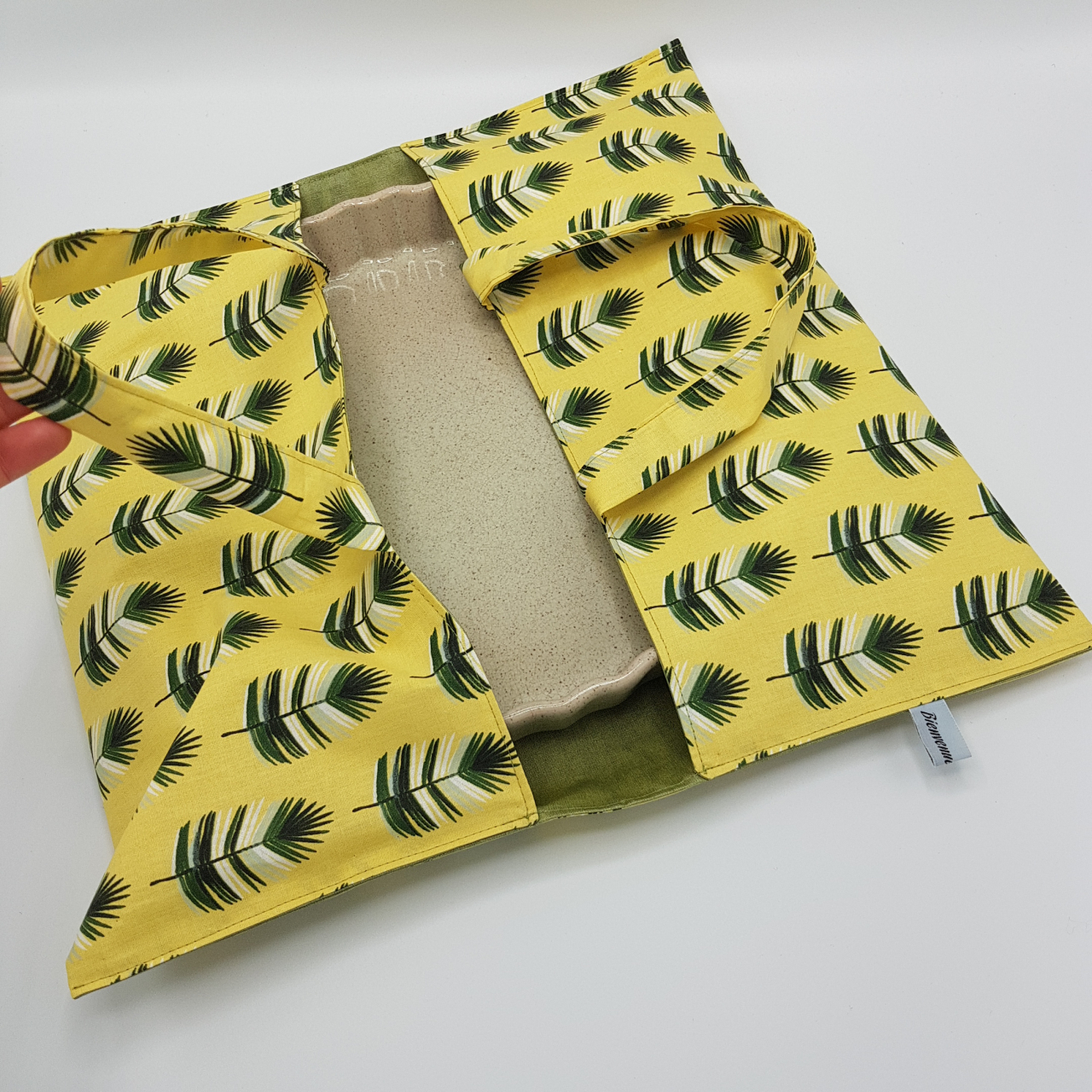 Un sac adapté, pour éviter le sac plastique ou le porté acrobatique de tarte faite maison, de gâteau du pâtissier ou de tout autre plat ou saladier, et arriver sans encombre à bon port !