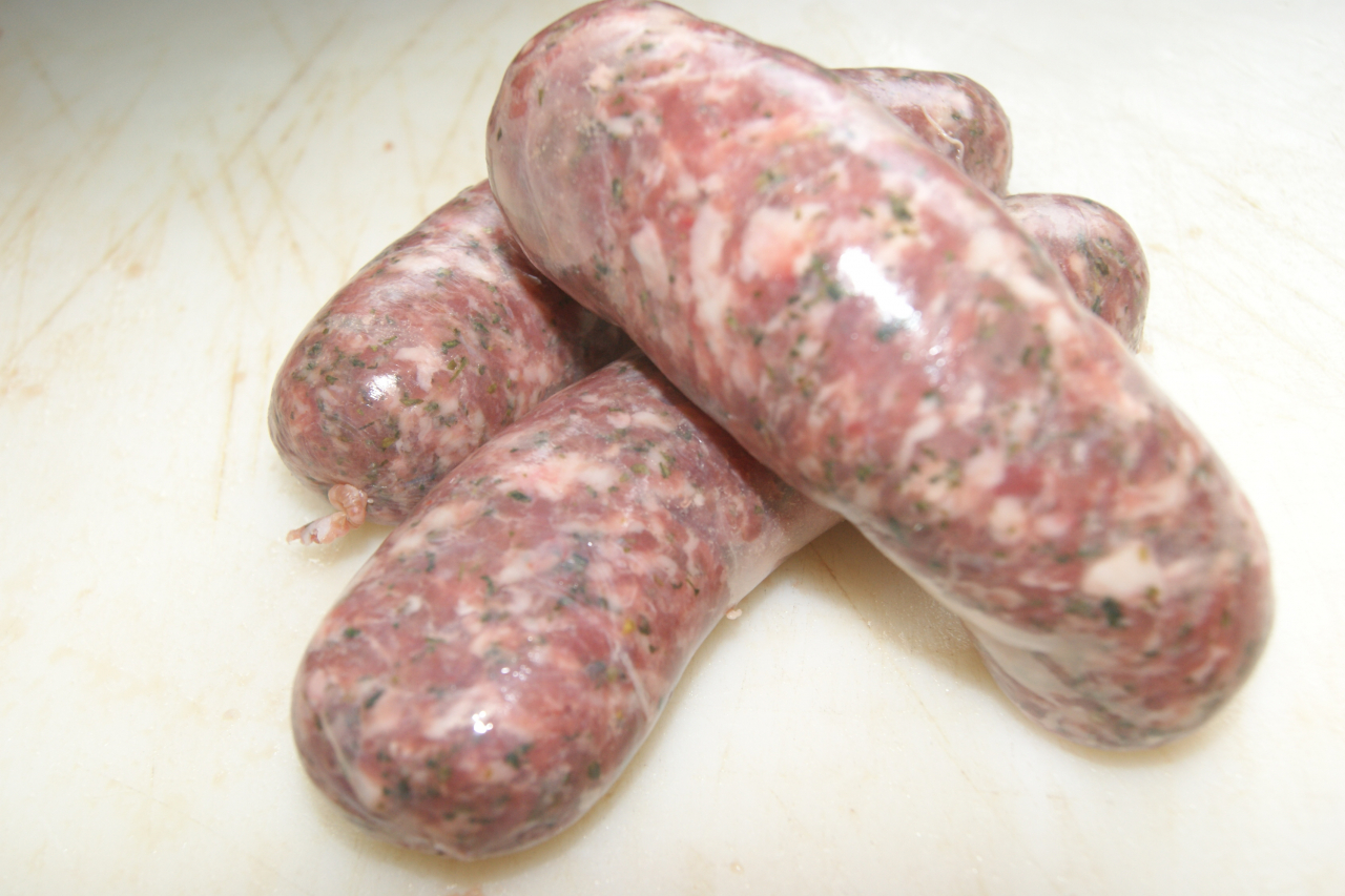 Saucisses de Toulouse mais de Ollans; pur porc aux herbes.