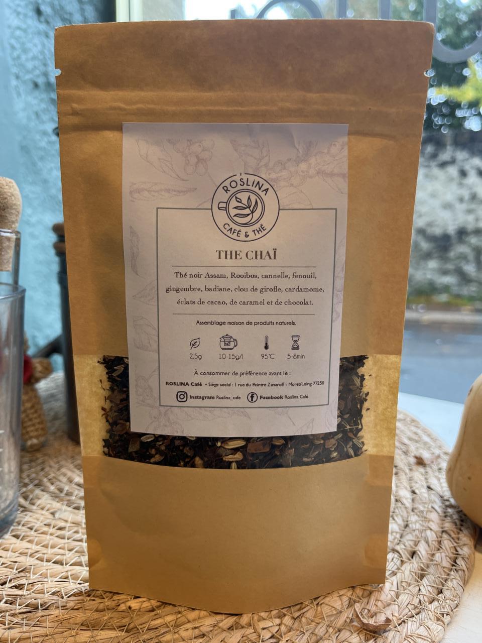 Ingrédients : Thé noir Chaï Gourmand Bio Thé Noir Assam en provenance d'Inde du Sud, rooibos*, cannelle*, fenouil*, gingembre*, cardamome*, Cacao*, morceaux de chocolat, morceaux de caramel. *issus de l'agriculture Biologique